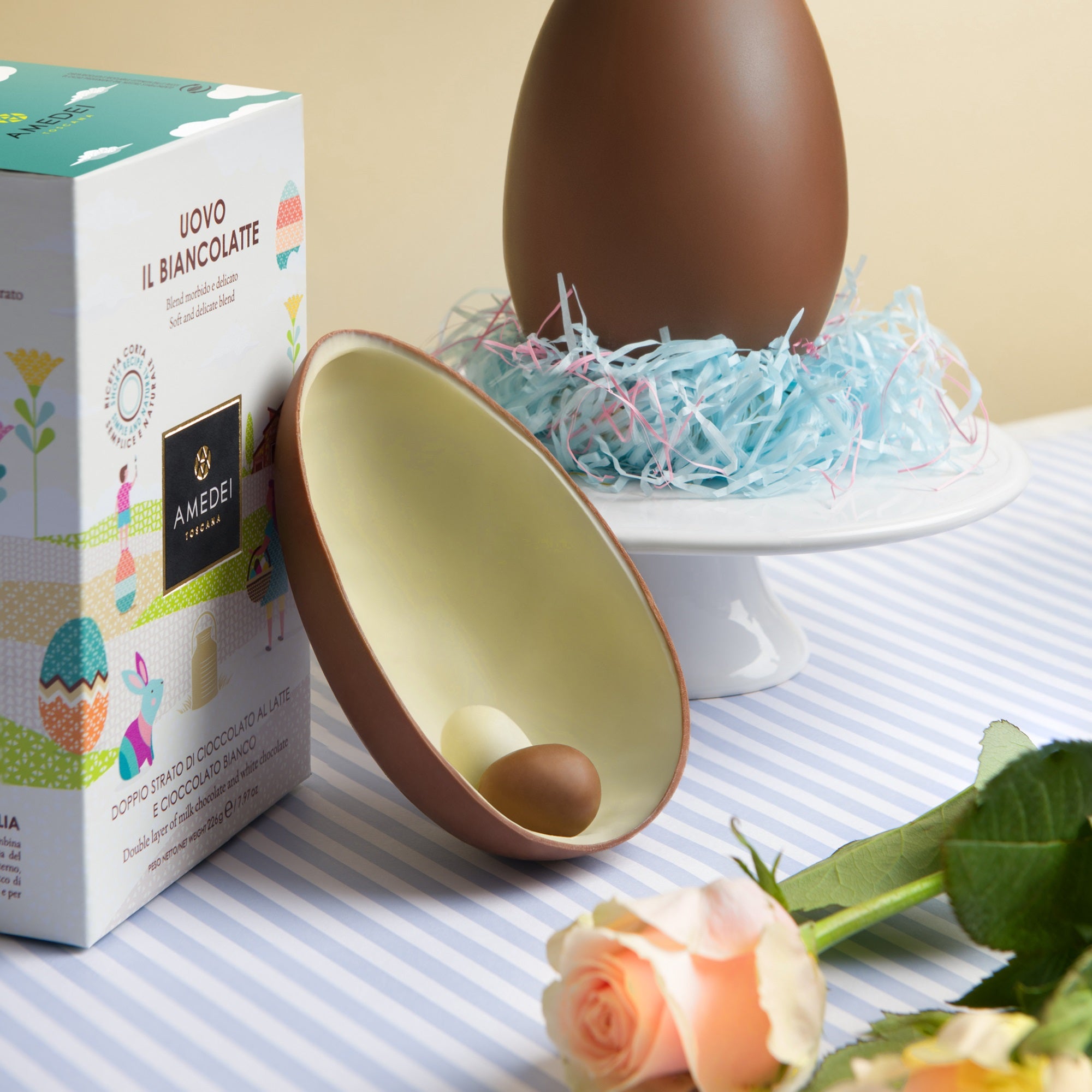Amedei trasforma le sue pluripremiate creazioni di cioccolato in preziose Uova di Pasqua. Un saper fare italiano in cui eleganza, semplicità, passione ed esperienza si fondono in un gusto che richiama la magia della terra in cui viene creato: la Toscana.